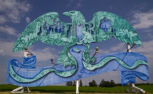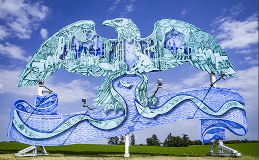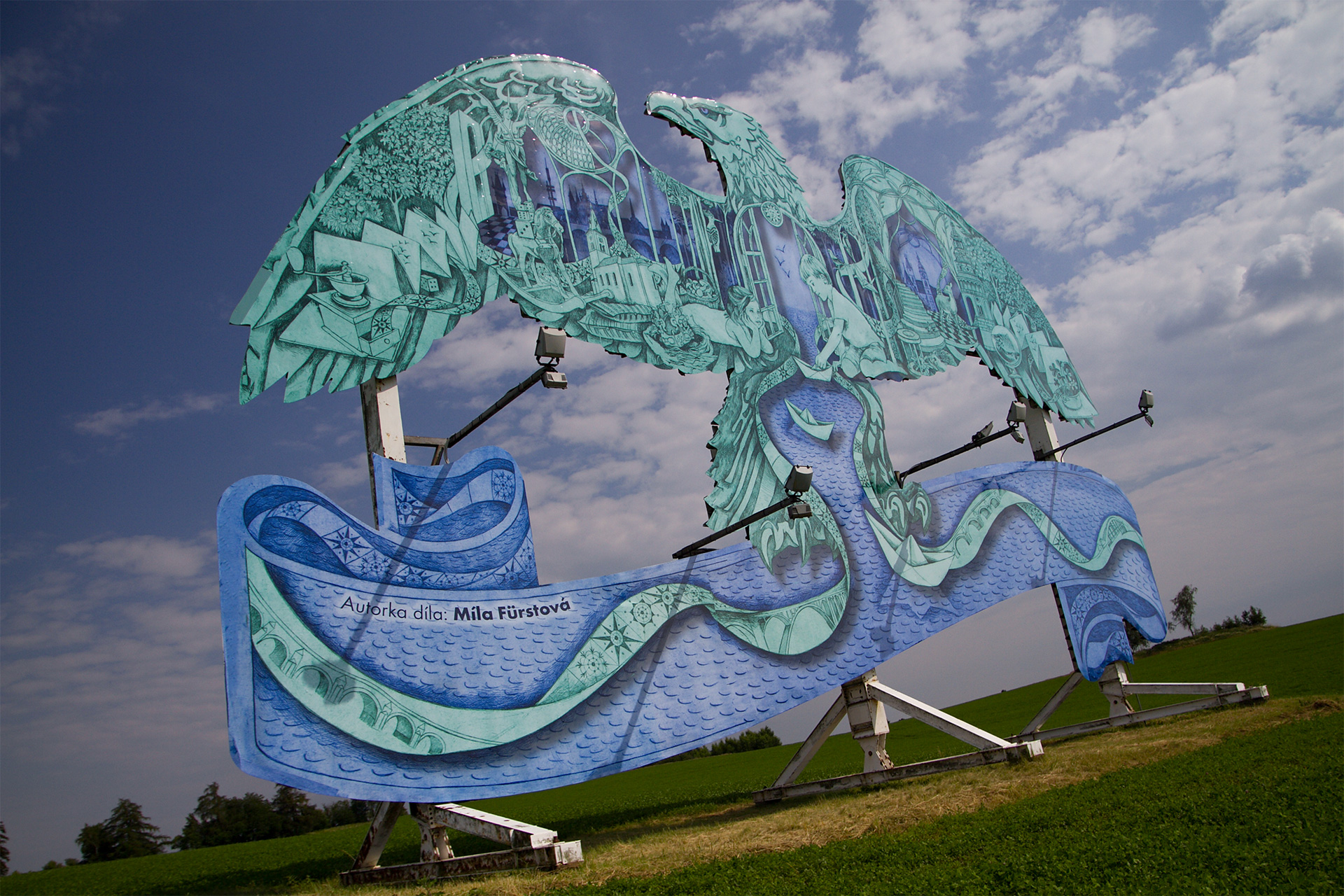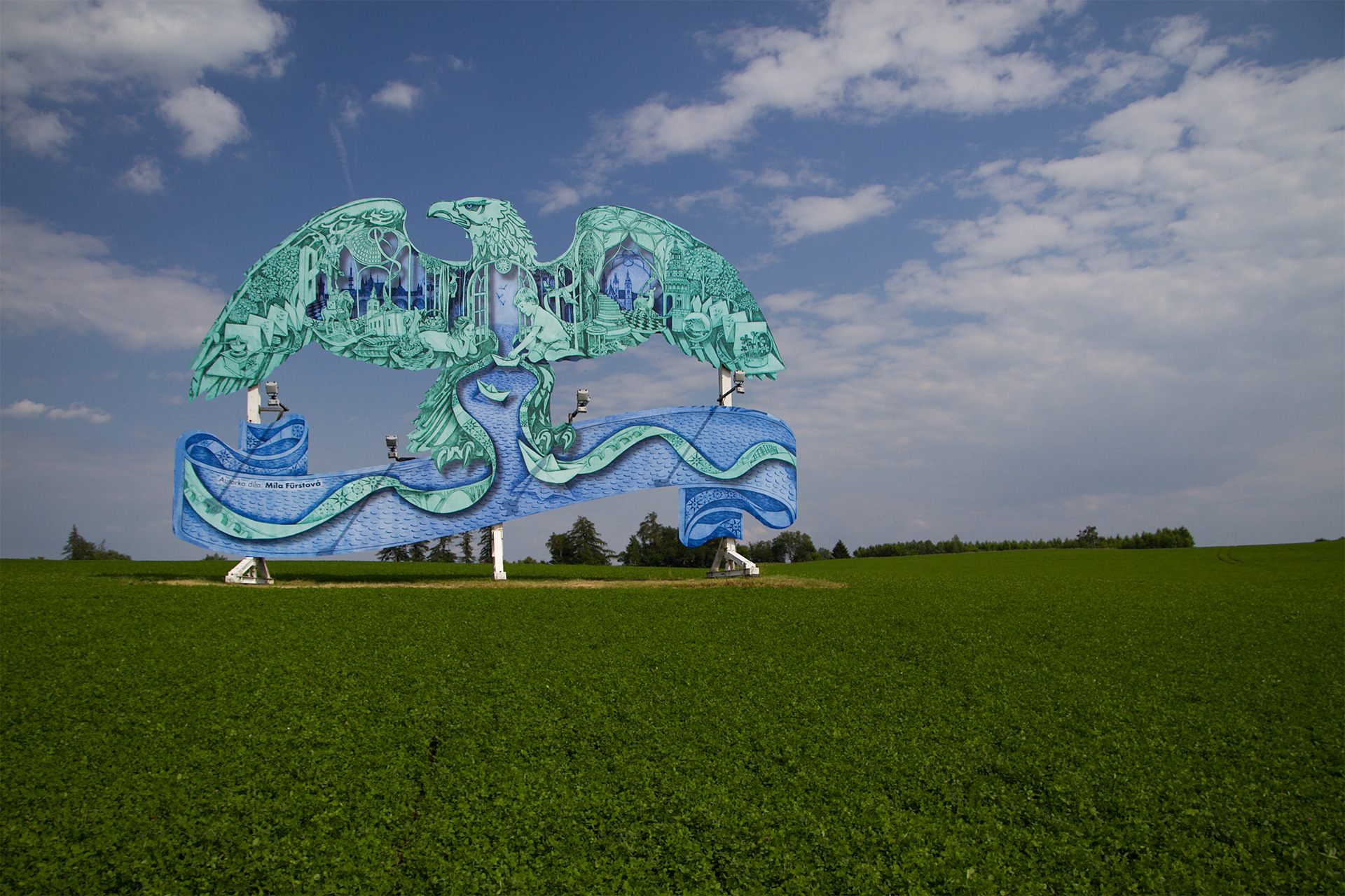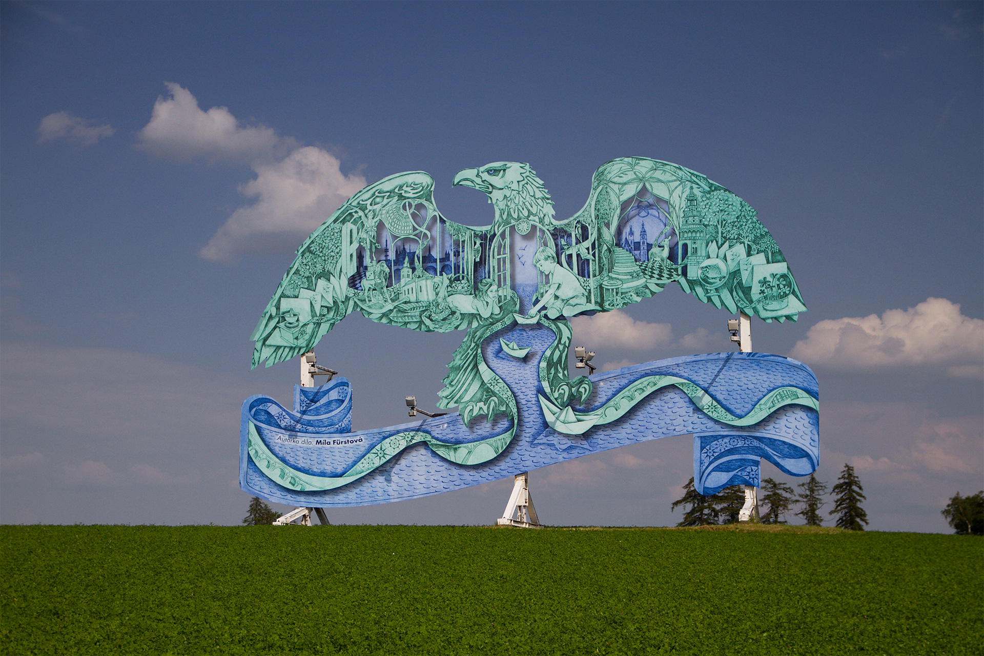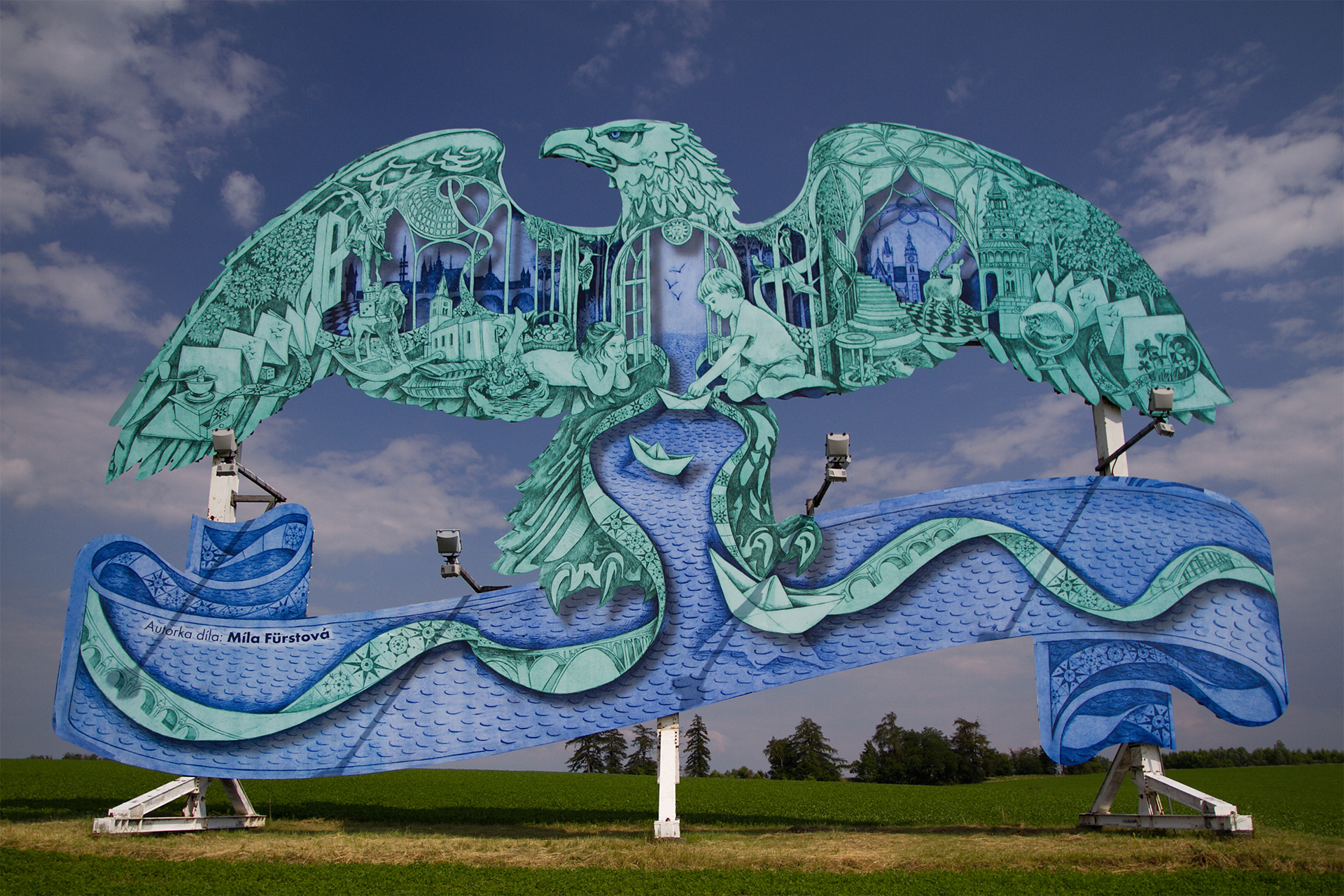 Spoločnosť Karlovarské minerální vody (KMV) oslovila s ponukou vytvoriť výtvarné dielo na netradičnej ploche vo verejnom priestore Mílu Fürstovú, českú maliarku a grafičku, ktorá dlhodobo žije v Londýne. Míla pracuje dnes už so vzácne používanou technikou leptu a jej grafika je charakteristická precíznymi detailmi, ktoré ako celok vytvárajú pôsobivé obrazce. K jej najznámejším dielam patrí obal hudobného albumu Ghost Stories britskej hudobnej skupiny Coldpay. Práve jeho hlavný motív krídel inšpiroval spoločnosť KMV, aby Míle ponúkli spoluprácu na premene jedného z orlov.