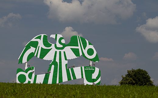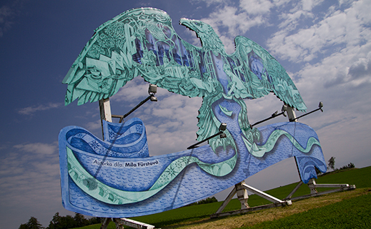 Od polovice júla už pri diaľnici D1 neďaleko Nového mesta nad Váhom neuvidíte známeho orla, ktorý je symbolom značky Mattoni. Veľkoplošný „orol“ bol nahradený umeleckým motívom. Vytvorila ho Míla Fürstová, medzinárodne uznávaná česká grafička žijúca v Londýne.